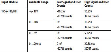 Fitur alarm ini mendeteksi ketika modul input terisolasi beroperasi di luar batas yang ditetapkan oleh rentang input. Misalnya, jika Anda menggunakan modul 1756-IF6I dalam rentang input 0… 10V dan tegangan modul meningkat menjadi 11V, overrange mendeteksi kondisi ini. Tabel mencantumkan rentang input modul 1756-IF6CIS dan 1756-IF6I dan sinyal terendah / tertinggi yang tersedia di setiap rentang sebelum modul mendeteksi kondisi underrange / overrange.
